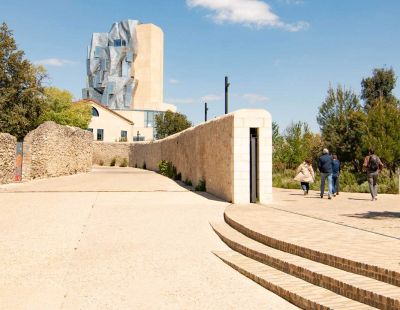 Tekst: L’édifice conçu par l’architecte Frank Gehry se présente extérieurement comme un nuage de verre posé sur un plan d’eau. La façade du bâtiment est faite de grandes surfaces en panneaux aux géométries complexes et d’enveloppes vitrées. L’ensemble forme le clos et couvert du bâtiment, tandis qu’une deuxième peau, constituée de 12 voiles de verre toutes différentes, l’enveloppe de manière fluide sans créer de nouveaux espaces fermés. Ces verrières comprennent des assemblages mixtes bois-acier très complexes et des charpentes métalliques.
