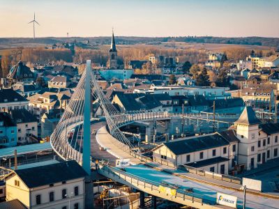 Tekst: <p>Afin de faire face à l’augmentation du flux de voyageur, la Gare de Luxembourg au Grand Duché s’est développée à travers la création de deux nouveaux quais.<br /> D’une largeur de passage de 4 mètres, d’un design beaucoup plus moderne et de forme ovale, un nouvelle passerelle garantit l’accès aux 6 quais de la gare tout en facilitant le passage des riverains entre les quartiers Gare et Bonnevoie.<br /> La passerelle, avec ses 100 m de longueur, est composée d’un tablier en acier à dalle orthotrope, permettant une hauteur de construction minimale pour des portées conséquentes. Des cintres en profilés métalliques HEB 140 portant la toiture et servant de support pour les panneaux en verre courbe sont fixés au tablier tous les 1,50 m.<br /> La structure est constituée de cinq tronçons et se compose d’une dalle orthotrope et d’un système de toiture, cintrée avec une façade en verre courbe. La pose de la passerelle a nécessité la mise à l’arrêt de la gare pendant une semaine. C’est pourquoi le constructeur métallique a opté pour la réalisation de montages à blanc de l’ouvrage dans son atelier en Belgique.</p>