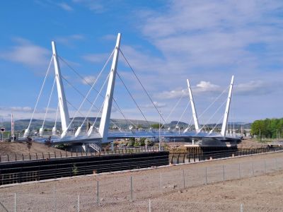 Tekst: Depuis septembre 2024, la passerelle 'Govan Partick Footbridge' à Glasgow relie à nouveau les quartiers de Govan et Partick au-dessus de la Clyde, où un service de ferry était en service jusqu'aux années 60. Long de 115 m, ce pont est l'un des plus grands ponts piétonniers mobiles d'Europe. Il combine une portée suspendue de 95 m avec un pylône (environ 350 tonnes d'acier) et une partie fixe de 20 m. La construction en acier peint auto-patinable (S355J2W) s'harmonise architecturalement avec le Riverside Museum et fait référence aux grues historiques des chantiers navals. VBSC a opté pour une modélisation paramétrique dans Tekla afin de maîtriser la géométrie et la mécanique complexes. Lors de la fabrication, une attention particulière a été accordée à l'alignement précis des ancrages des câbles et aux tolérances. Les cinq segments avec un tablier orthotrope ont été assemblés à Wondelgem pour former un tout et équipés de mécanismes par Demako. Après le montage du pylône et des câbles à Westdorpe près de Terneuzen, avec des poids factices et du ballast, la travée du pont a été transportée par ponton à Glasgow et mise en place en octobre 2023.